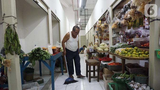 Aktivitas pedagang pasar di Jakarta, Senin (28/10/2019). Badan Pusat Statistik (BPS) Provinsi DKI Jakarta mencatat sebagian harga komoditi di Jakarta mengalami penurunan yang menyebabkan deflasi sebesar 0,04 persen selama September 2019. (Liputan6.com/Angga Yuniar)