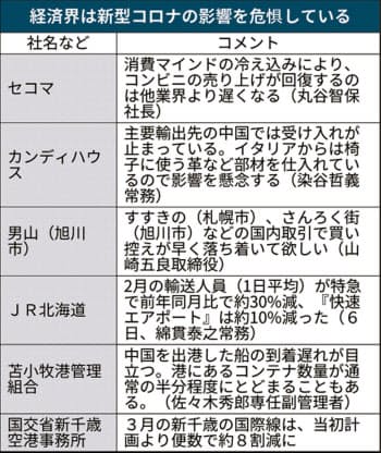 新型コロナウイルスの感染拡大の影響が北海道の実体経済に波及してきた。日経平均株価の9日終値は前週末比で1050円下落。円相場も一時1ドル=101円台まで円高が進んだ。9日から中国、韓国から入国を制限する措置も始まり、北海道経済を支えてきた訪日外国人消費に「壊滅的」との声も聞かれ始めた。