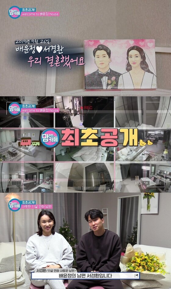 25일 오후 방송된 티캐스트 E채널 '맘 편한 카페' 5회에서 배윤정은 11세 연하 남편과의 러브 스토리를 공개했다. 배윤정 부부의 알콩달콩한 신혼 생활이 전해졌다. 배윤정은 남편과 있을 때 애교 가득했고, 남편은 임신한 아내를 살뜰히 챙겼다.